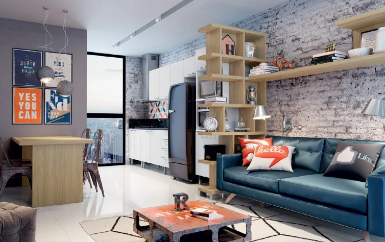 Gostou do conceito aberto e ainda tem um espaço grande à disposição? Então você pode aderir ao estilo industrial. Originado na adaptação de espaços industriais abandonados, esse estilo aproveita grandes áreas e um pé direito alto. A decoração é marcada por superfícies de cimento queimado, paredes de tijolos e janelas amplas. Quem quiser complementar a composição, pode apostar em trilhos de metal para as lâmpadas e canos aparentes. O estilo industrial é ideal para quem busca evocar um clima urbano na sua casa ou no seu empreendimento sem perder a classe.