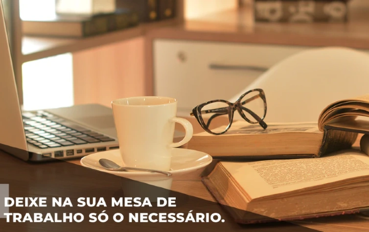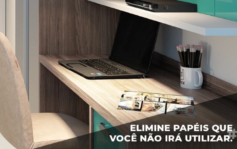 Para você conseguir manter sua mesa sempre limpa e organizada, elimine os objetos que estão sobrando, como bonecos colecionáveis, porta-retratos e canetas que você não utiliza. Além disso, dê lugares fixos aos objetos que você irá manter. Por exemplo, deixe o porta lápis sempre ao lado direito, a caixa de clipes ao lado esquerdo e assim por diante. Esses pequenos detalhes irão economizar o seu tempo durante o dia.