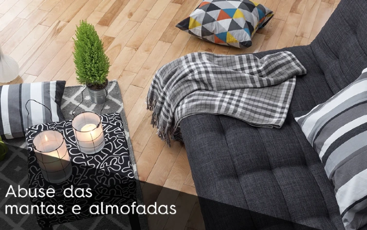 Os ventos frios do inverno nos obrigam a buscar abrigo e aconchego em camadas e mais camadas de tecido. Aproveite essa situação e dê uma nova cara para a decoração dos seus ambientes. Disponha almofadas, mantas e cobertores sobre os móveis da casa para unir o útil ao agradável. Essa técnica vale principalmente para dar um destaque aos sofás e camas da casa. Uma dica extra para quem estiver inspirado é buscar um diferencial com estampas e padrões mais ousados nos tecidos.