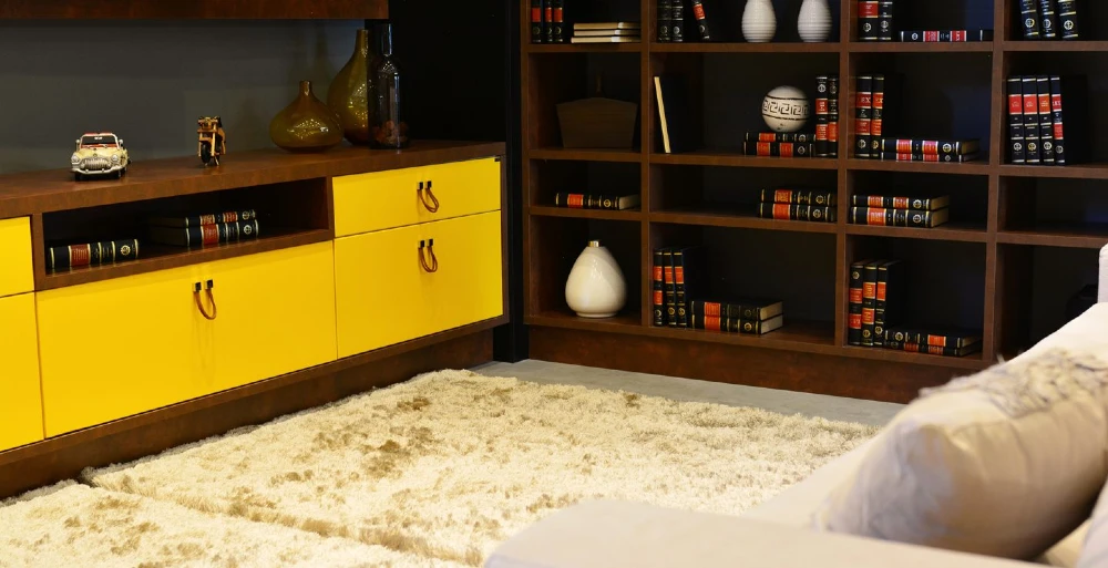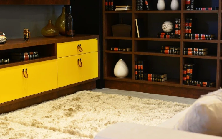 Para um ambiente ainda mais acolhedor, um tapete peluciado nunca é demais! Outra dica interessante é usar nichos para expor objetos que traduzam um pouco da sua personalidade. Nesse projeto, usamos livros e vasos decorativos.
