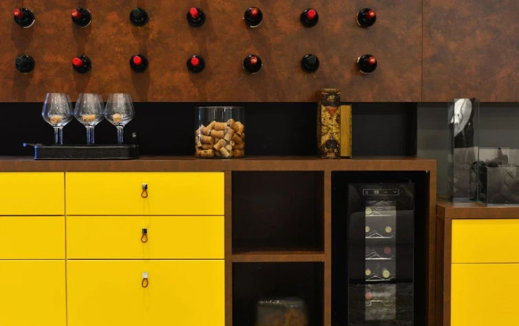 Outra dica é: se você mora em uma casa grande, aproveite os espaços. Nesse projeto, por exemplo, apostamos em uma adega acoplada no próprio móvel. Além de trazer mais personalidade – como já falamos acima -, deixou a sala mais requintada e moderna.