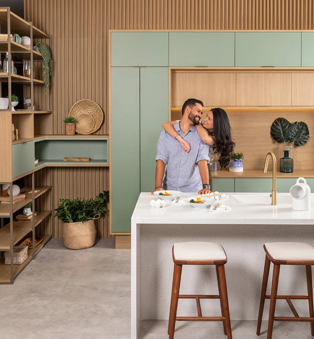 Das águas cristalinas do CARIBE vem a inspiração deste revestimento. Um verde suave e leve que permite um toque de cor de forma atemporal.