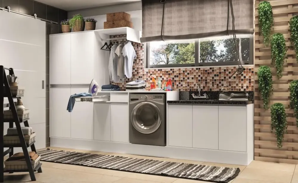 A lavanderia é essencialmente um local de trabalho. Portanto, a inclusão de detalhes funcionais pode tornar o dia a dia muito mais prático, sem interferir no design do projeto.